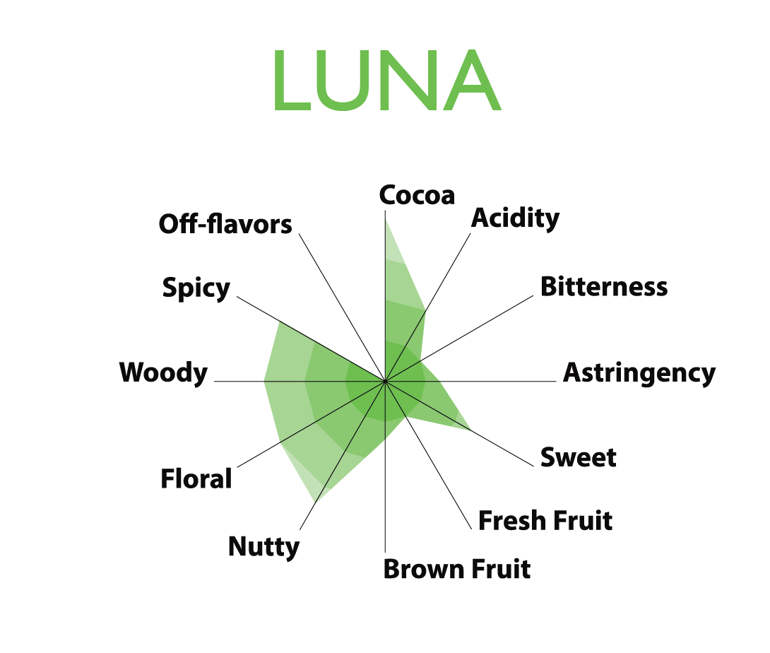 Het gaat hier om een melkchocolade, met 50% cacao. Allemaal deze specifieke ‘Luna’ cacao uit de Filipijnen.