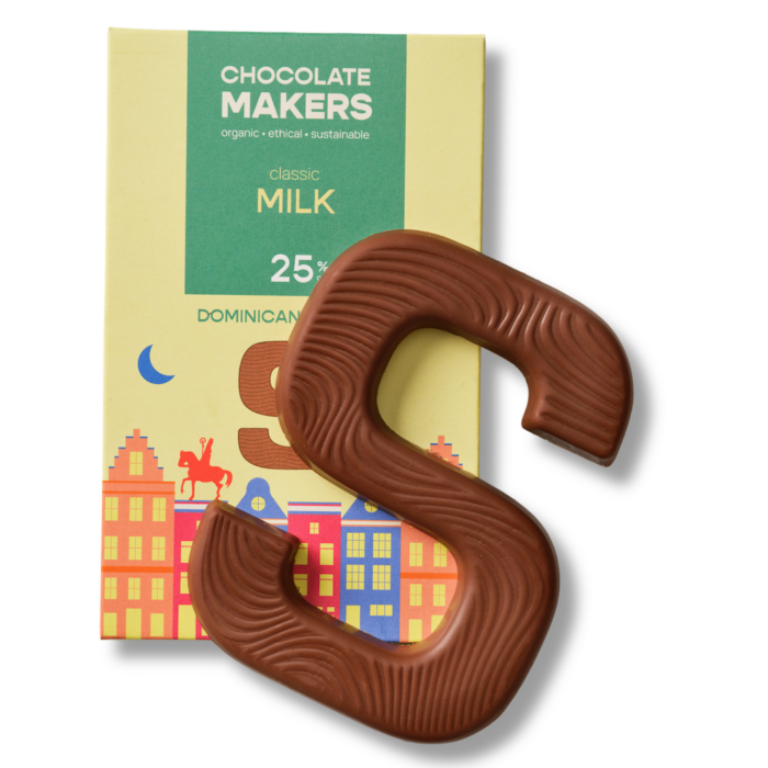 Daar konden we dankzij de chocoladeletters van Chocolatemakers al volmondig ja op zeggen. Maar dan kwam soms de volgende vraag… is die er dan ook in melkchocolade? Tot dit jaar moesten we daar helaas ‘nee’ op verkopen. Want de chocoladeletter was er wel in een mooie pure editie, en een vegan editie met speculaaskruiden. Maarja – wij weten ook – Sinterklaas stopt ook graag af en toe een ouderwetse klassieke melkchocolade in de schoentjes. En ook daarvoor kiest de goedheiligman graag voor eerlijke bean to bar chocolade van eerlijke cacao.