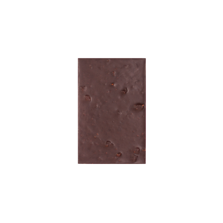 In deze reep hebben we een rokerige cacao gebruikt uit het dorp Pinalum, gelegen op het eiland Malekula in Vanuatu. De bonen zijn op natuurlijke wijze “gerookt” doordat ze werden opgeslagen naast houtvuur-gedroogde copra, wat een smaak geeft die doet denken aan gerookte longan. Gemengd met verschillende zaden en vruchten is de chocolade nostalgisch en verrassend rustgevend — net als het dessert dat als inspiratie diende.
