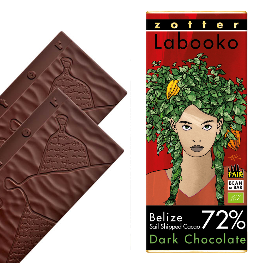 Zotter maakte van deze cacao niet één maar twee leuke en lekkere chocolades. Deze variant heeft 72% cacao – voor wie het graag nog een tandje puurder wil is er ook de variant met 82% cacao. Ook leuk om samen te bestellen, en ze te vergelijken.