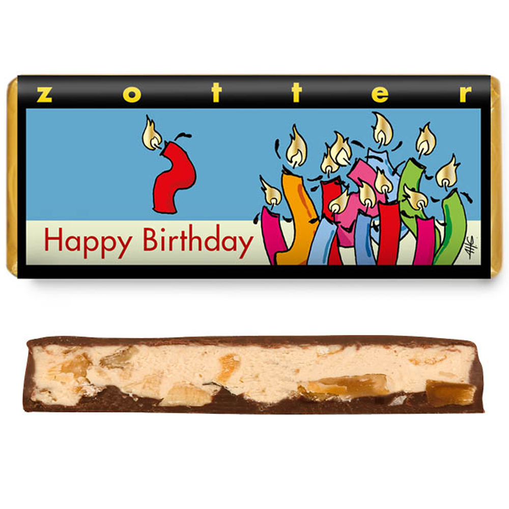 De Happy Birthday chocolade is een heerlijke melkchocolade met zachte amandel praline & amandelkrokantjes. Zalig zoet snoepen, te vergelijken met een bonbon – de Handscooped gevulde chocolades van Zotter vallen goed in de smaak. Geen repen om uitgebreide proeverijen mee te houden, maar om simpelweg van te genieten. Guilty pleasures, al hoef je je er bepaald niet schuldig om te voelen. Bovendien zijn ze allemaal uiteraard van eerlijk verhandelde cacao en bovendien biologisch gecertificeerd.