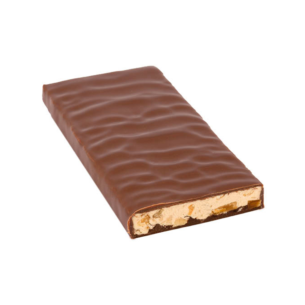 De makers zeggen er over: “Een zoete chocolade verrassing: als vulling een zelfgemaakte amandelpraliné, verfijnd met witte chocolade. Het amandelbroos, gemaakt van vers gekarameliseerde verbrande amandelen, zorgt voor een heerlijk knapperige, nootachtige ervaring. De hele creatie is omhuld met een melkchocoladeschil met een cacaogehalte van 50%. Met een gouden designelement.””