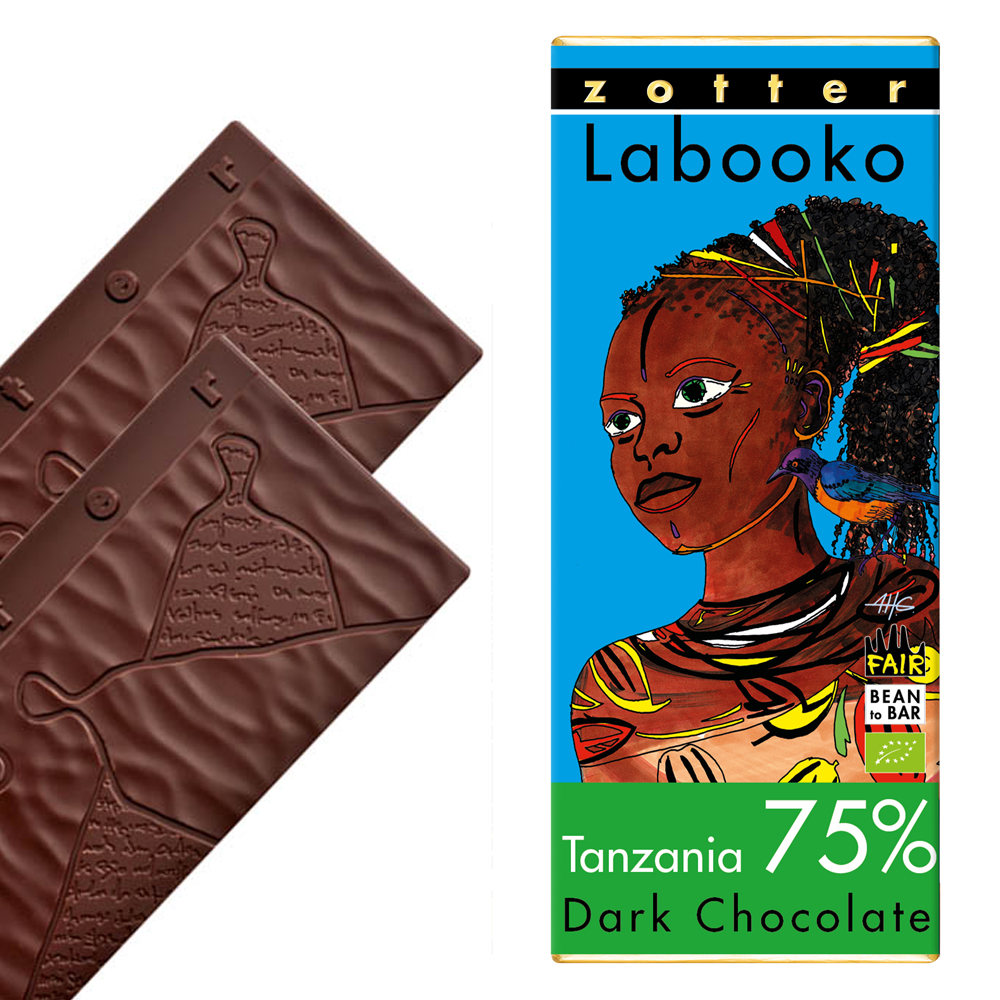 75% pure chocolade van cacao uit Tanzania.